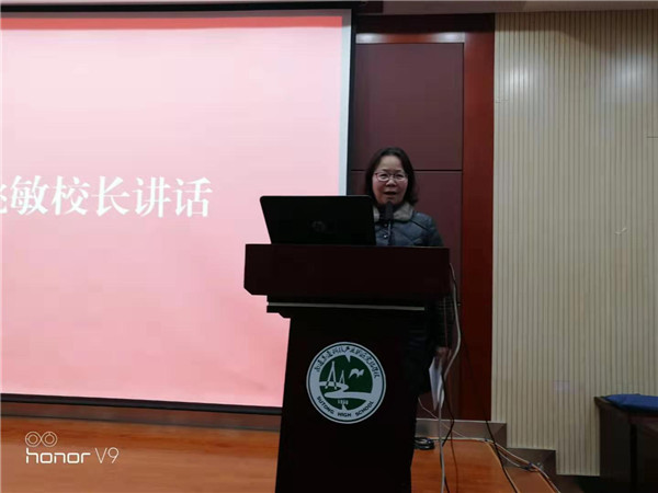 耿元元副校长从学校的发展、师资、成绩、管理等方面向六年级的学生及家长介绍了中学部情况。