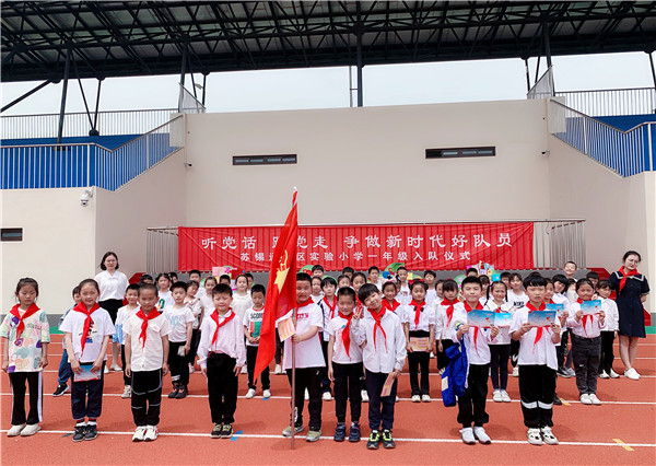 为深入贯彻落实习近平总书记“用实际行动把红色基因一代代传下去”“从小事做起,从身边做起,努力争做新时代的好队员”的要求和勉励,增强我少先队员光荣感和组织归属感,在“六一”国际儿童节来临之际,苏锡通园区实验小学举行了“听党话跟党走争做新时代好队员”的新队员入队仪式。