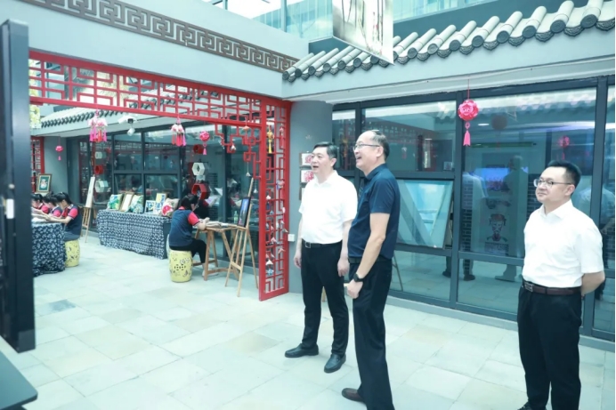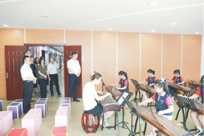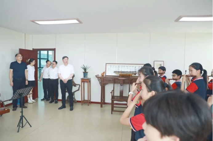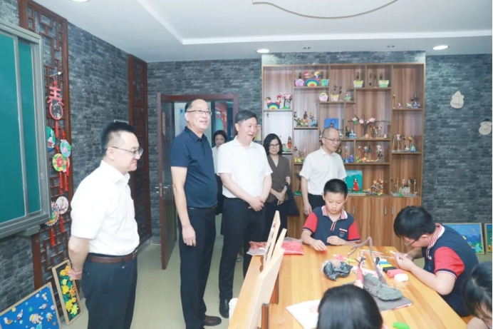 曹主任一行深入学校选修课程活动现场,饶有兴致地观看了学生活动的场景。陶艺面塑组的孩子们巧手翻飞间尽显无限创意,“伶工学社”里戏曲声婉转悠扬,国画山水组的同学们挥毫泼墨,作品中浸润着美学素养……