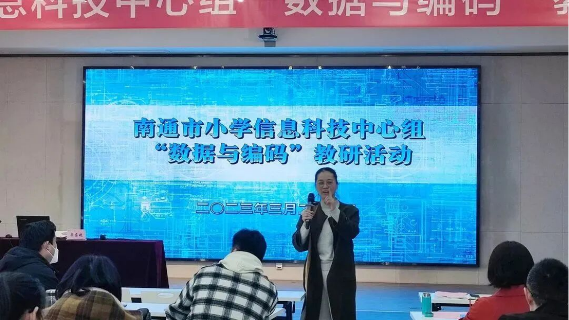 下午,南通开发区实小集团星湖校区徐达老师执教研讨课《我是智慧的通信员》,徐老师让学生模拟通信员间相互传递秘密信息来了解文字与数字间的转换过程。学生通过动手参与编码过程,提升了对编码的敏感性和对编码的主动分析能力,了解了编码在信息社会中的重要价值。