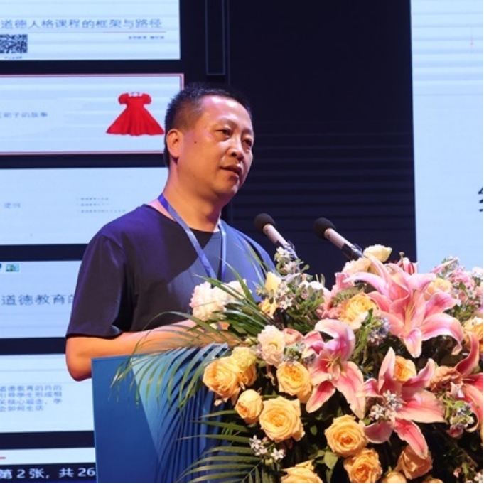 发言主题为《道德人格教育的框架和路径》。他认为,班主任可以是从人类历史上的伟大者、当代生活中的卓越者、学生生活圈子中的优秀者、校园生活的先进者、文学或影视中的道德形象,也可以从老师或家长的自觉行为中寻找榜样示范教育的小切口进行道德人格教育。