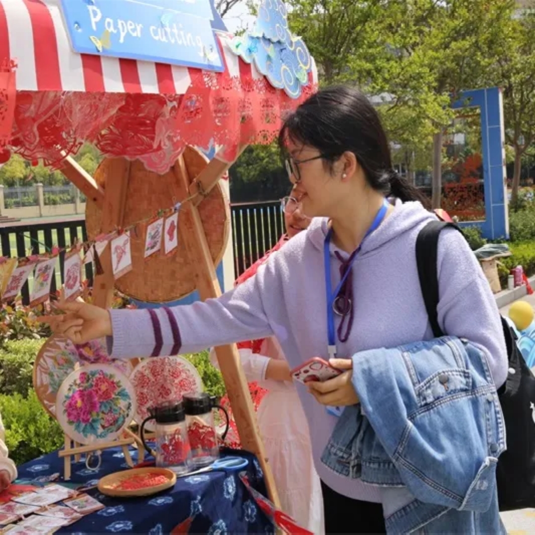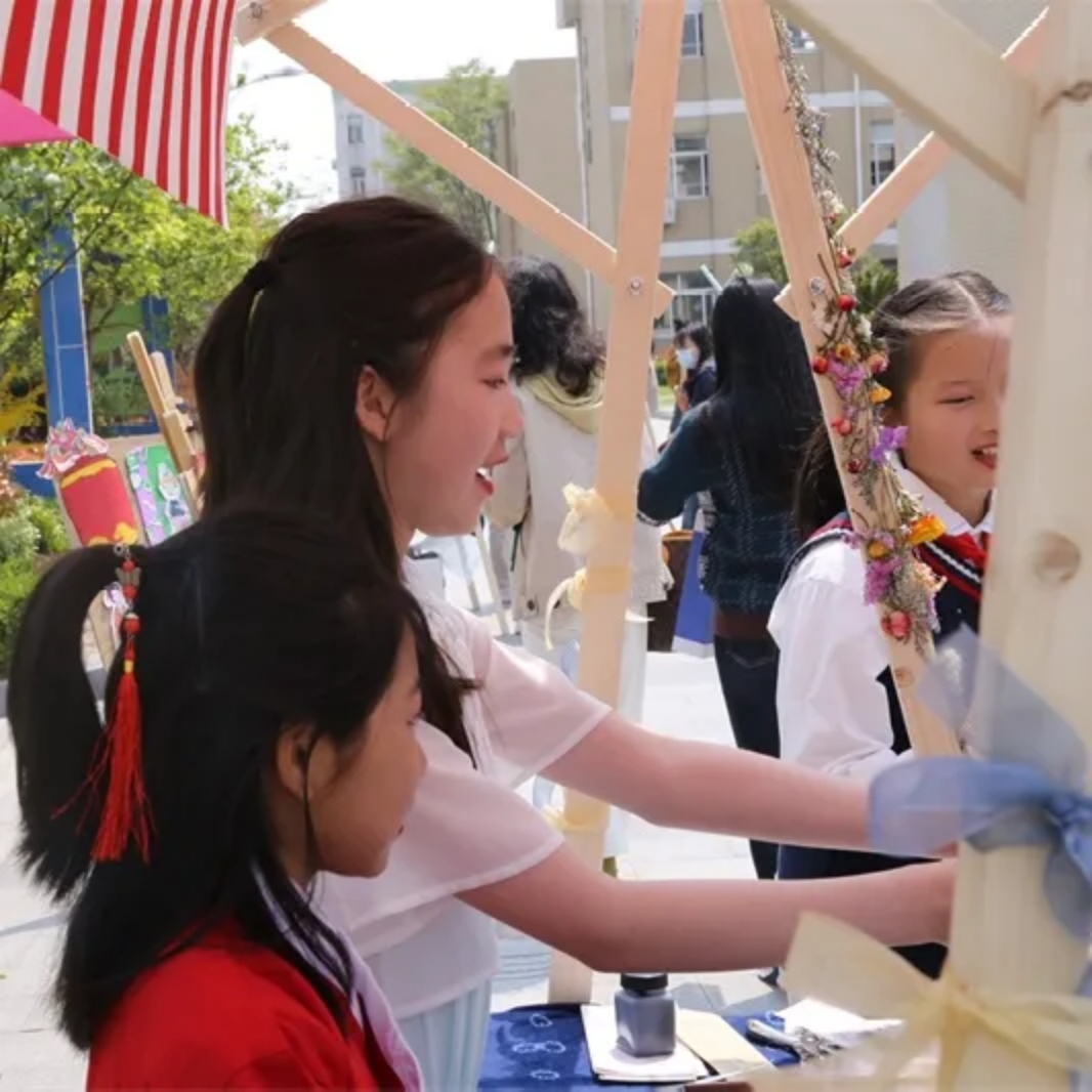 穿过春意盎然的崇真大道,扑鼻而来的是糕点甜香、纸笔墨香......身着汉服的孩子化身热情好客的文化使者,支起各色摊铺,摆满中华传统吃食与手工。