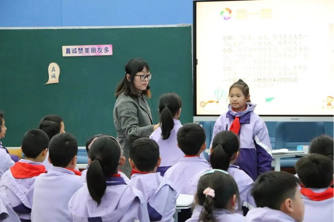 课堂上,老师们贴近儿童生活,夸一夸,赞一赞,演一演,以多种形式引导学生发现称赞他人要适度、多角度、要具体等特点,带领孩子们感受赞美之趣。