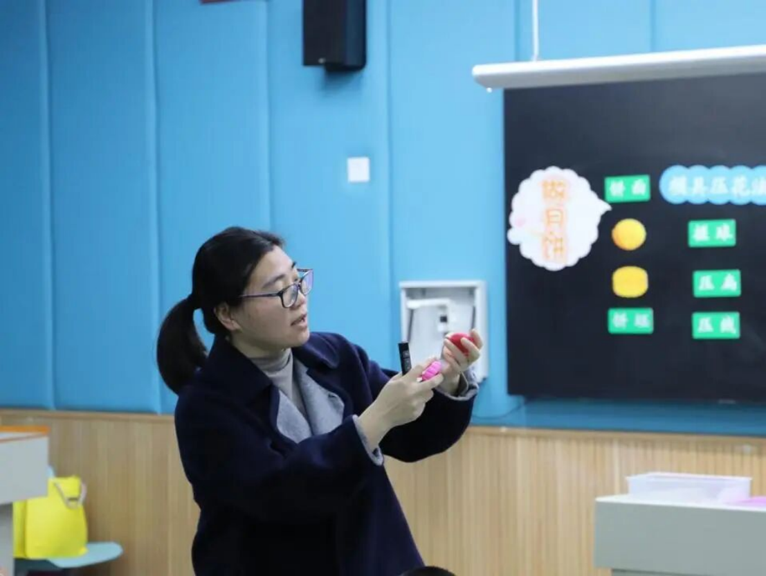 清风徐来,一路向暖。教学展示环节,龙腾校区杨阳老师呈现了一节劳动课《手链》。课上,杨老师指导二年级的学生认识钩针,用彩泥制作手链,将教室化作小小手链展览馆,让学生在做手链、当展览馆小助手的过程中体会到“美好生活,劳动创造”。