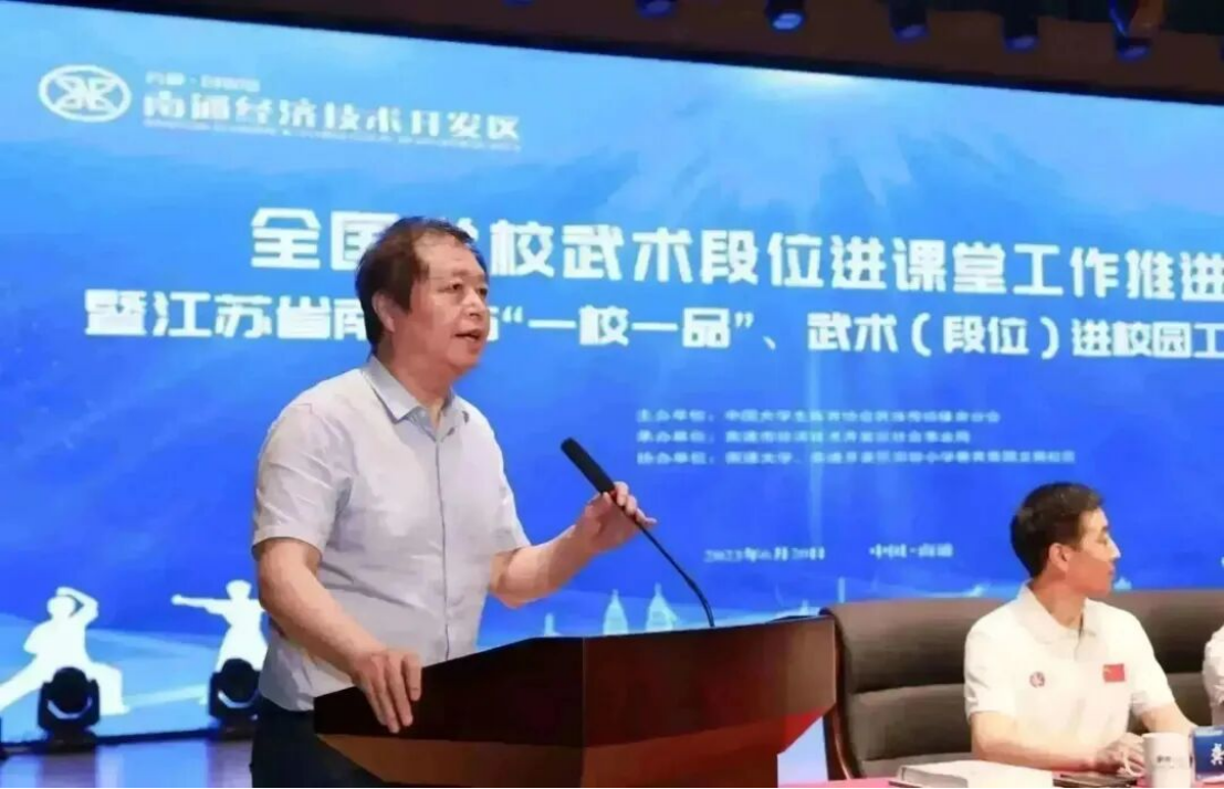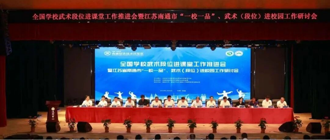 为深入学习贯彻党的二十大精神,深刻学习领会习近平总书记关于弘扬中华优秀传统文化的重要指示批示精神,加强武德教育,推进中华武术进校园、进课堂,6月20日,全国学校武术段位进课堂工作推进会暨江苏南通市“一校一品”、武术(段位)进校园工作研讨会在南通开发区实验小学教育集团龙腾校区顺利召开。本次会议由中国大学生体育协会民族传统体育分会主办,南通市经济技术开发区社会事业局承办。来自全国大近百名体育教育系统领导,中国大学生体育协会,民族传统体育峰会的各位专家参加了本次会议。本次会议由社会事业局副局长倪敏担任主持。