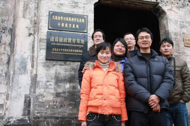 我校党员外出教育考察 在第二批学习实践科学发展观教育活动中,我校党总支为了将理论与实践相统一,于是在2010年新年伊始,便组织全校党员和中层以上干部外出教育考察。在浙江清漾村毛氏祖居地,再一次领略了一代伟人的风采;在诸葛八卦村廉政教育基地,再一次体会了“淡泊明志”的道理。在短短的两天半时间里,尽管天气寒冷,行程紧凑,但广大党员的心更明了,眼更亮了,自觉实践科学发展观的意识更强了。