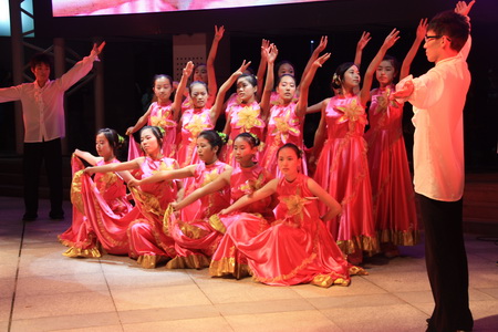 演出结束后,管委会陈强副主任、社会事业局黄洪生局长在天星湖中学徐新民校长的陪同下走上舞台,向同学们表示热烈祝贺。